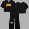 Fits and Sizes : Top : Crop top. Bottom : Straight Fit.